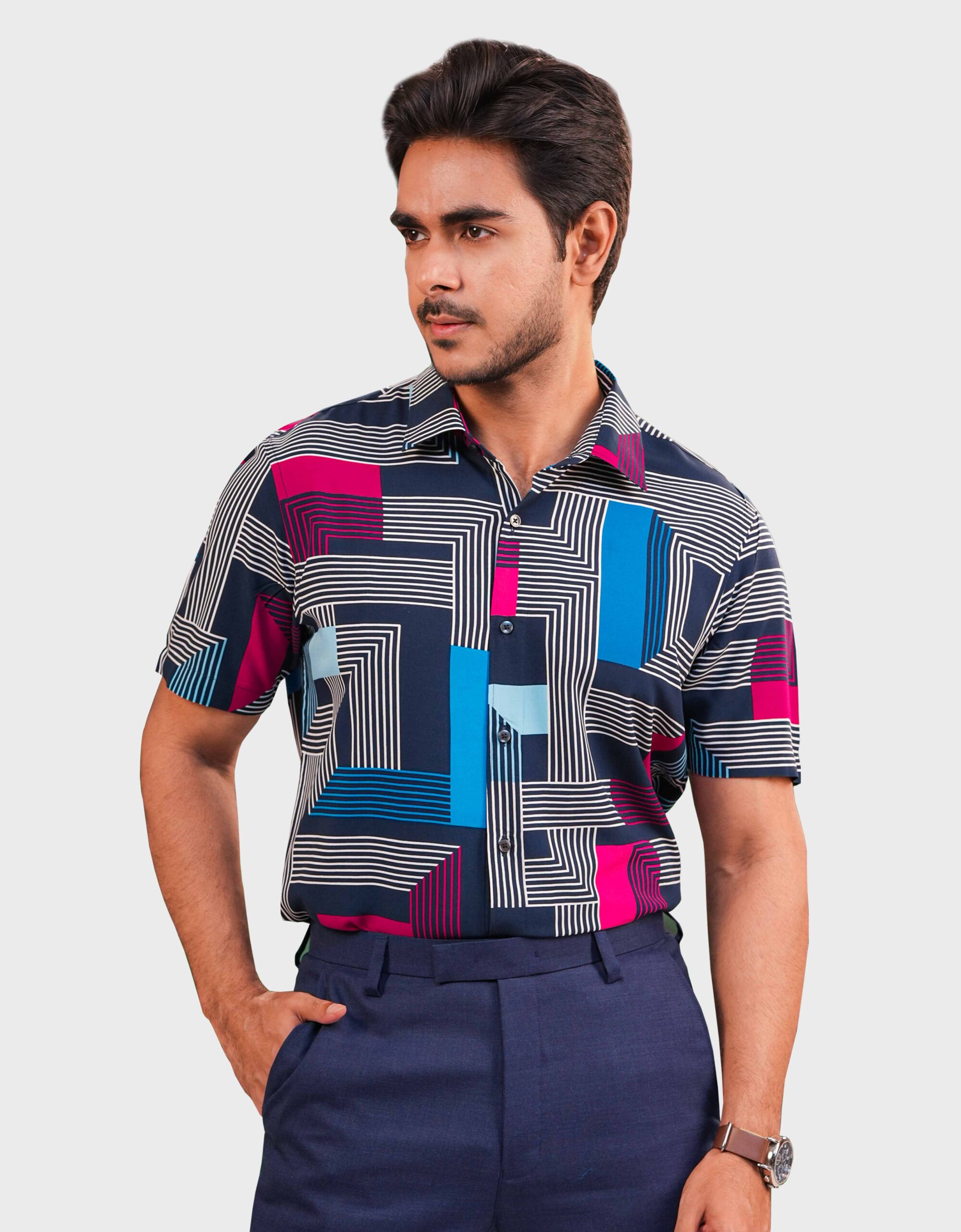 A slim-fit half-sleeve shirt is a stylish wardrobe essential that combines a tailored look with casual comfort. Made from soft, breathable fabric, it ensures ease of wear while maintaining a sharp, fitted silhouette. Designed with a close-fitting cut, buttoned front, and short sleeves, it offers a sleek and polished appearance. Perfect for casual outings, office wear, or smart-casual occasions, it effortlessly enhances your overall style. A timeless piece, the slim-fit half-sleeve shirt brings contemporary flair and elegance to everyday wear.